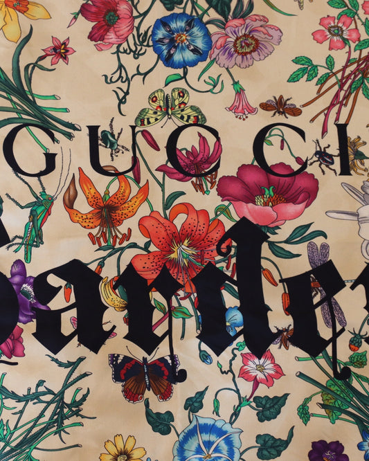 Gucci Silk Scarf - Garden Collection with Pink/Orange Border