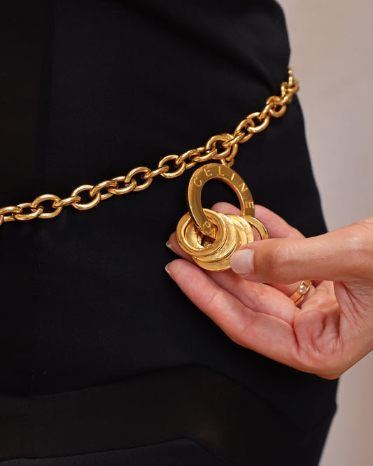 Celine Chain Belt Decorated with Gold Rings and Logo