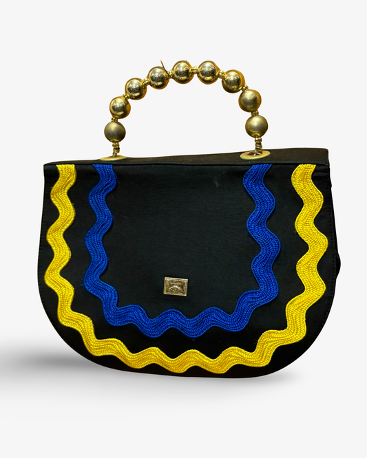 Cloth Handbag with Blue, Yellow, Green and Pink Stripes